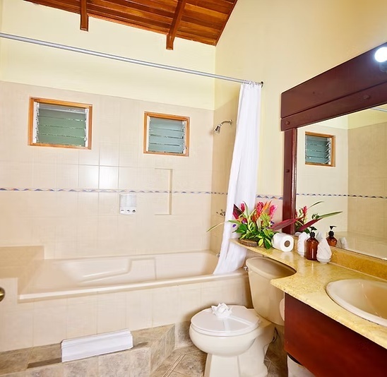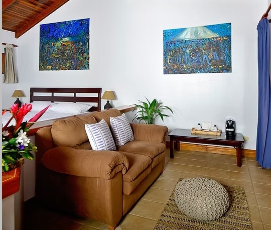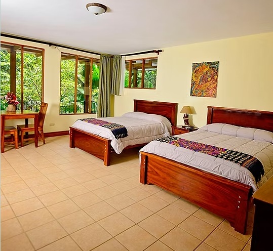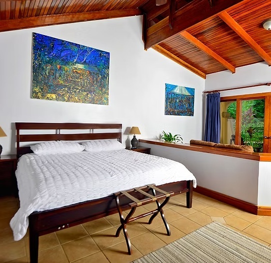 Relax and bask in the sensuality of the mosaic tiled pool with a romantic waterfallcave. All the while surrounded by lush vegetation, flowering trees, colorful birds and the native monkeys, sloths,kinkajous and anteaters that roam the grounds.