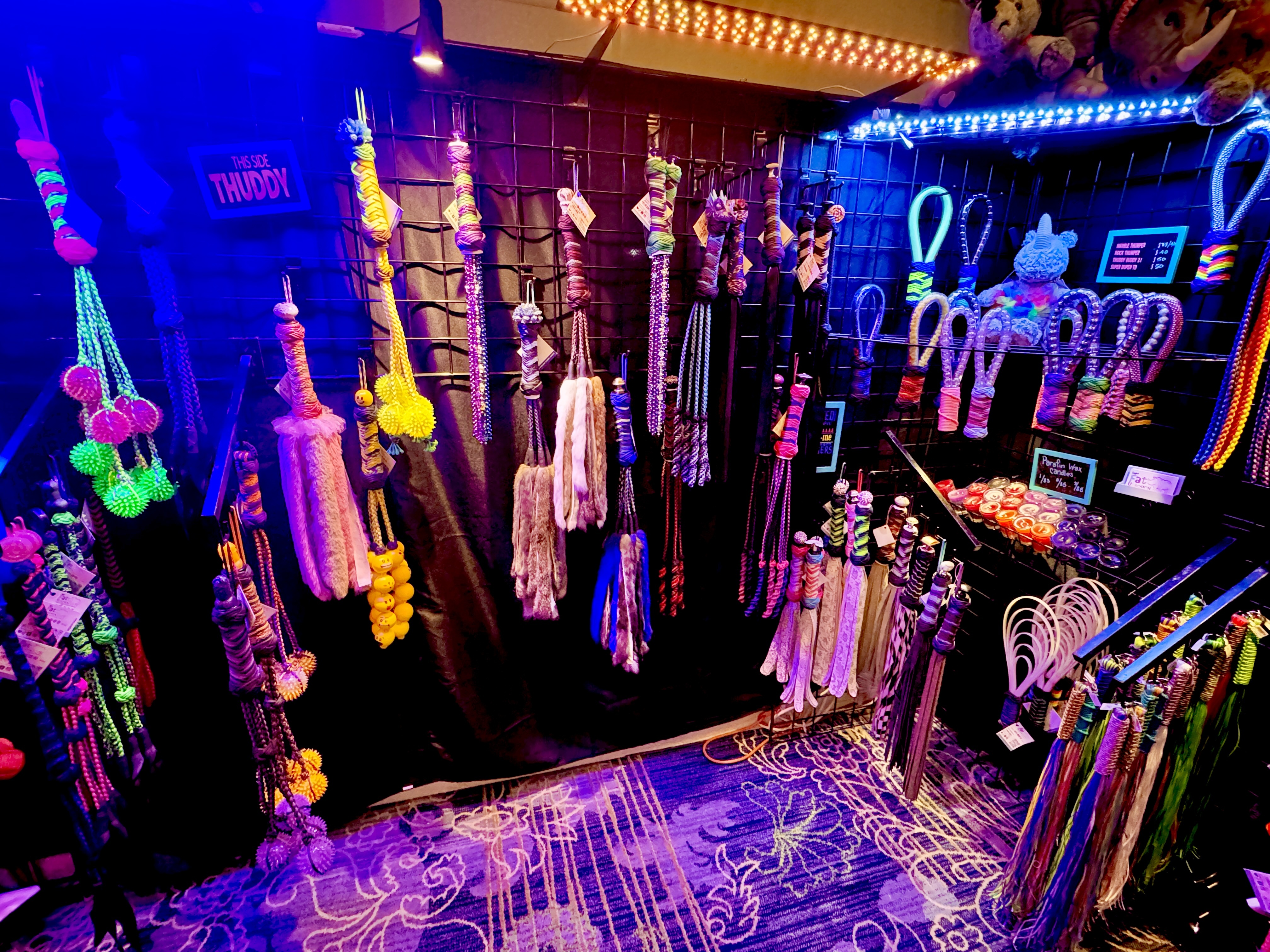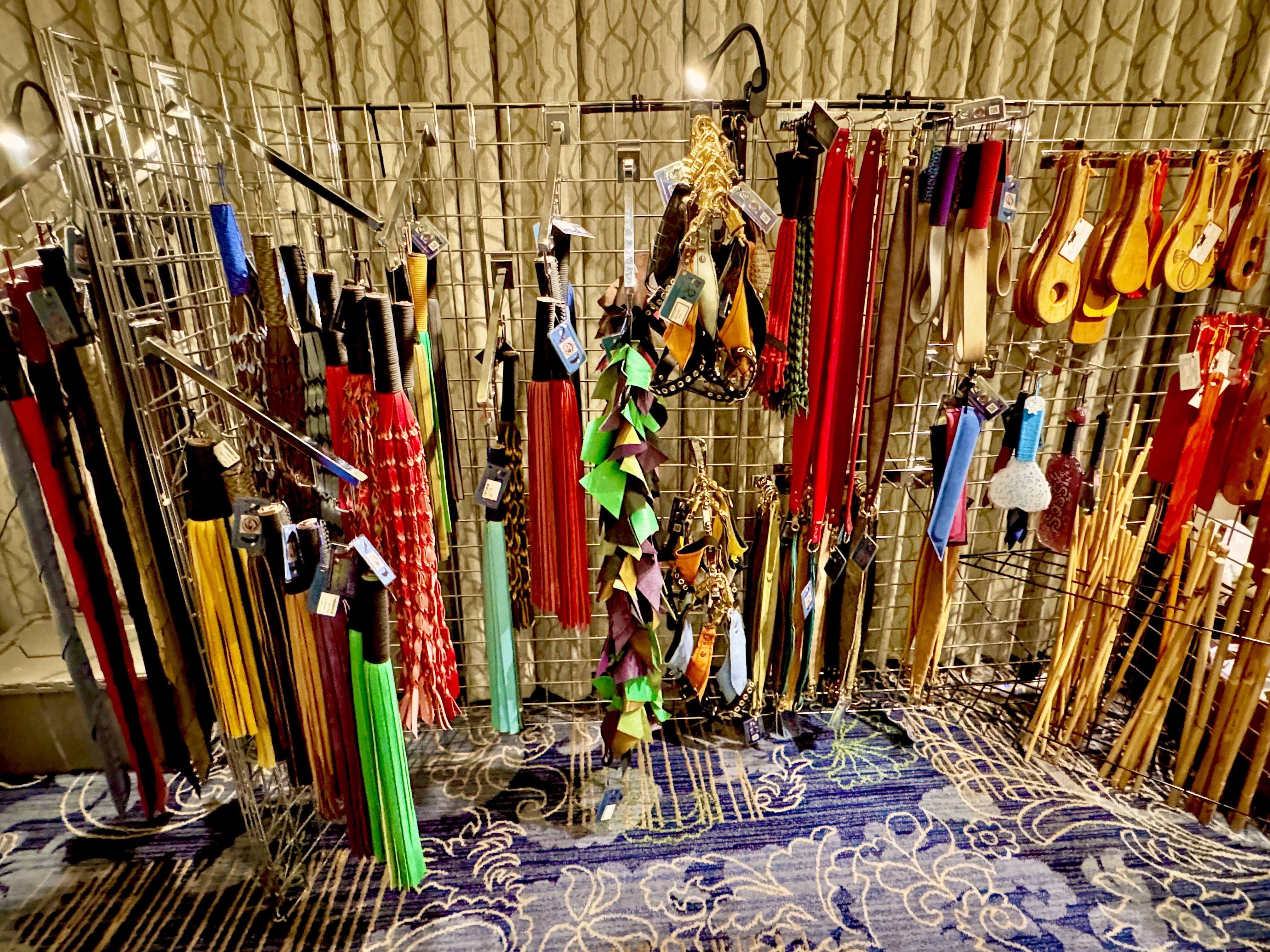 We also had an amazing number of top-quality vendors who sold a variety of dungeon furniture, floggers, masks, rope, restraints, and much more.